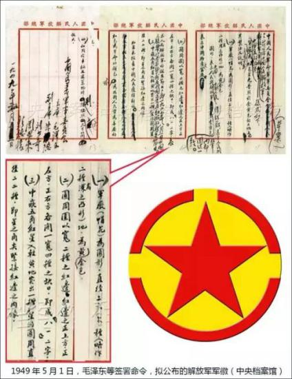 1949年4月26日,毛泽东审阅、修改了李涛将军关于军徽问题的请示报告,并拟于5月1日以中国人民革命军事委员会命令(草案)公布。