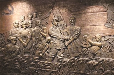 内黄红色沙区革命纪念馆内的冀鲁豫军区成立浮雕。资料照片