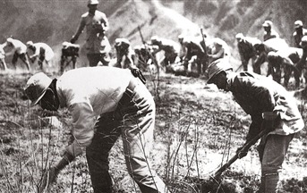 八路军在太行山上开荒。资料照片
