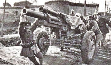 我军缴获的敌军榴弹炮。资料照片