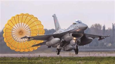 除减速伞外,还有其他一些减速制动手段。例如,美军使用碳-碳刹车片为战斗机减速。这种采用特殊材料制成的刹车片,能够经受住飞机制动摩擦产生的上千摄氏度高温,有效缩短战斗机的滑跑距离。美中不足的是,碳-碳刹车片造价昂贵,只有美国等少数国家采用。在美国出售其他国家的战斗机中,仍有不少使用减速伞。照片中这架波兰空军的F-16战斗机就属于这一情况。还有一些国家使用拦阻索为战斗机减速。拦阻索原本是航母舰载机使用的减速制动装备,美军将其从航母搬到空军基地,以弥补雨雪天气条件下碳-碳刹车片制动能力的不足。