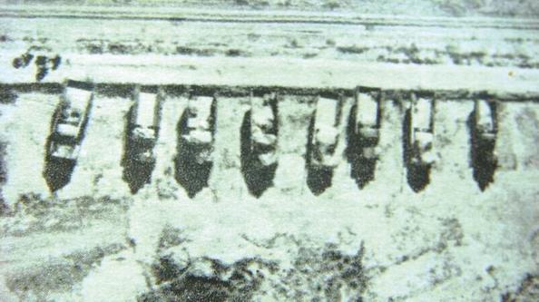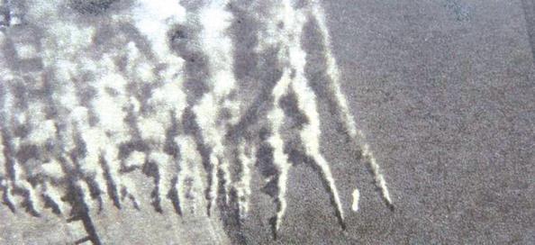 航空照片中出现正用烟幕掩护强渡江河的部队