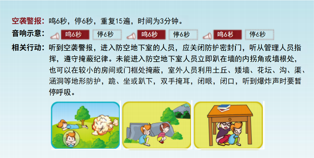 按警报发放时机,分为预先警报、空袭警报和解除警报。