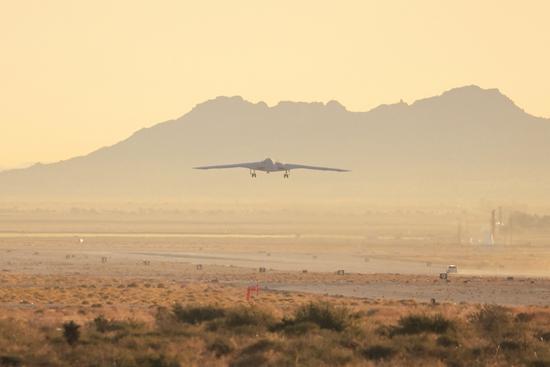 11月10日,美国空军新一代轰炸机B-21在加利福尼亚州帕姆代尔空军基地试飞。新华社/路透