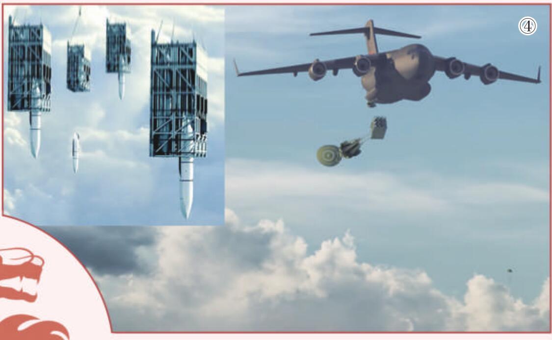 2022年11月,美军在挪威安多亚太空防御靶场上空开展“速龙”托盘式弹药项目试验(图④)。美军将AGM-158B巡航导弹以托盘方式,装载到MC-130运输机货舱中,升空后采用空投方式发射。