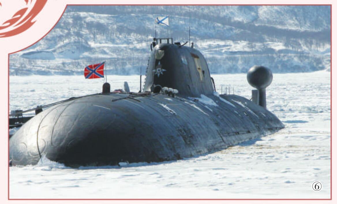俄罗斯海军一艘阿库拉级(971型)攻击核潜艇曾以“龙”命名。该艇于1995年加入俄海军太平洋舰队第二潜艇支队,被命名为“龙”号(图⑥),舷号K267。遗憾的是,这一名称存在时间不长。