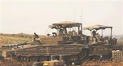 车体侧面加装了防磁条带的以军坦克。资料图片