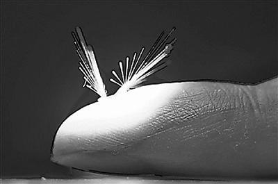 该型机器人具有多项仿生特征,高孔隙率和轻质结构使其能轻易飘浮在风中,而稳定的分离涡环生成让其能够长距离依靠风力辅助飞行。研究人员表示,“仙女”可由光源供电和控制。通过光控制,微小的蒲公英种子状结构可适应风向和风力。此外,聚合物组件的起飞和着陆也可通过光束控制。该型机器人还配备一个柔性制动器,可通过可见光激发刷毛的打开或关闭。