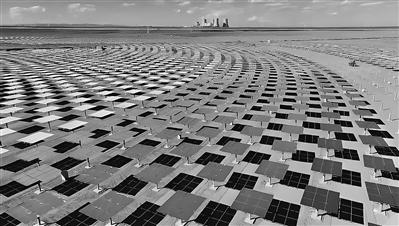 全球首个“双塔一机”光热储能电站定日镜场。资料图片