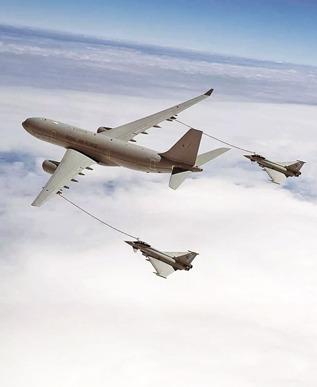 A330MRTT型空中加油机由欧洲空中客车公司研制,机长58.8米,翼展60.3米,最大载油量111吨。该机采用软管加油,可同时为两架战斗机进行加油,并具备空中受油能力。机舱内有较大的运输空间,可兼顾人员和货物运输工作。A330MRTT型空中加油机主要负责为北约作战飞机提供空中加油支持,曾在阿富汗战争中为参战的北约各国战斗机和运输机提供空中加油,保障其作战行动。在海外军事干预行动及本土防空作战演练中,该机也承担相应的空中加油任务,提高空军的作战效能和灵活性。