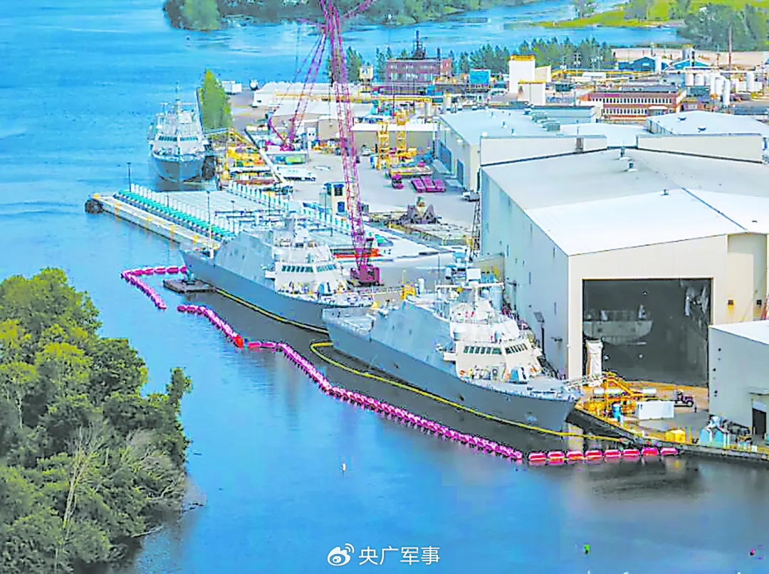 资料图:当地时间2024年7月12日,多艘在建军舰停靠在美国威斯康星州一家造船厂内(来源:环球网)
