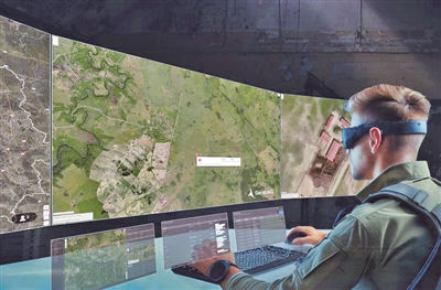 一是沉浸式交互界面。“虚拟指挥站”系统的AR头显具备高清分辨率与高刷新率,确保动态画面的流畅性。抗冲击镜片与抗雾涂层使其具备较高的战场适用度,120克重量的设计确保长时间佩戴舒适性。另外,AR头显还搭配任务控制器,指挥员可通过手势、触觉反馈实现精准操作,例如标记敌方位置或切换数据视图,大幅降低操作复杂度。二是多域数据整合能力。该系统可实时接收无人机侦察影像等多源情报,利用大数据算法进行融合分析。例如,无人机传回的实时画面可直接叠加于AR头显的地理坐标上,帮助指挥员快速制定火力打击方案。