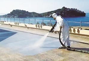 作为防水材料喷涂在屋顶的聚脲涂层。