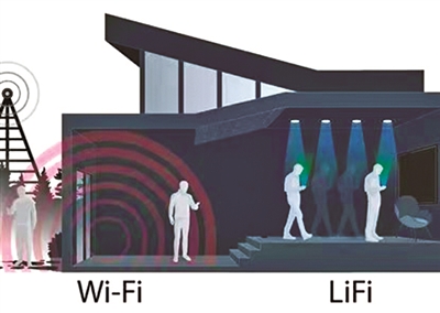 可见光无线通信Li-Fi,又称“光保真技术”,是以可见光作为信号载体,通过LED光源发出的调制光频,进行无线通信的技术,其原理基于光的物理特性。在物理概念中,光属于电磁波的一种,与无线电、Wi-Fi等高频交流变化电磁波一样,都是电磁波谱中的一部分。光的频谱范围从可见光,到紫外线、红外线等不同频段,宽带资源丰富,携带的数据量比无线电、Wi-Fi等高出许多。Li-Fi以光的特性为基础,利用电信号控制LED灯光的高速闪烁频率传递信息,并由接收端的光电探测器捕捉这些光信号并还原成数据信息。这一技术最早由德国科学家哈拉尔德·哈斯教授提出,近年来逐步成熟。在使用Li-Fi的房间内,电脑、手机等设备无需专门连接,只要开灯,便可自动接入互联网。