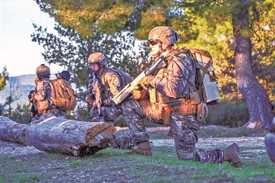 上面这张照片中,一队全副武装的法军特种部队作战人员正在执行任务。近处这名跪立的士兵,手中所持步枪科技感十足:枪管呈多面体,枪托底部有两根线缆与士兵背上的背包相连。显然,这并非传统步枪,与常见的无人机反制枪也有所不同。事实上,这是法国一家防务公司最新推出的激光步枪。