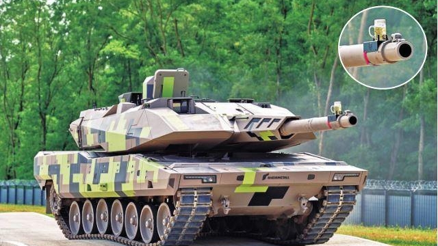 上面这张照片中,德国莱茵金属公司的KF-51“黑豹”主战坦克正在表演德系主战坦克的“传统节目”——炮管端酒杯。