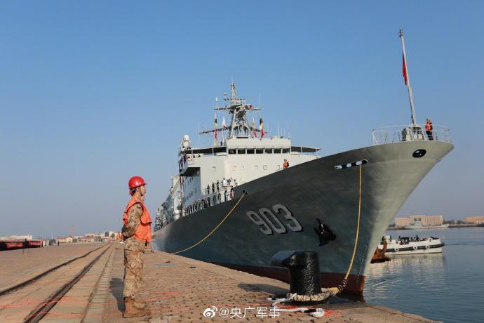 3月30日上午,圆满完成第42批护航任务的海军淮南舰、日照舰、可可西里湖舰,返回青岛某军港。