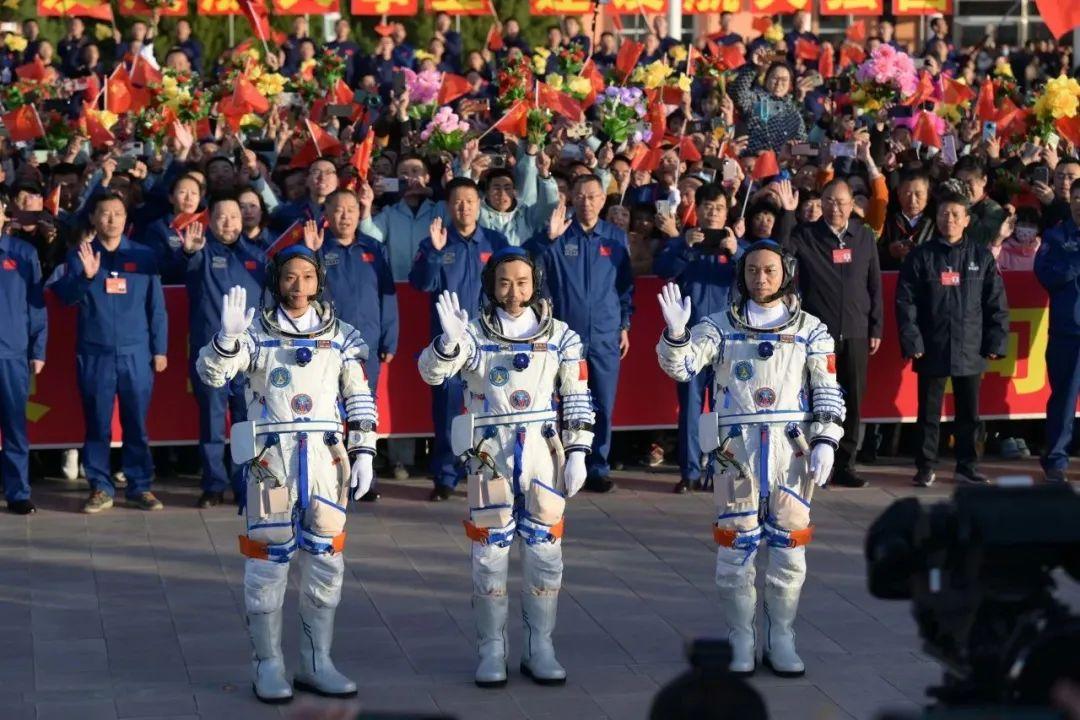 ■ 2023年5月30日,神舟十六号载人飞船发射取得圆满成功,景海鹏、朱杨柱、桂海潮3名航天员顺利进驻中国空间站。