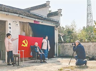 倪国初(右一)为百岁老兵汪治华拍照。黄亚明摄