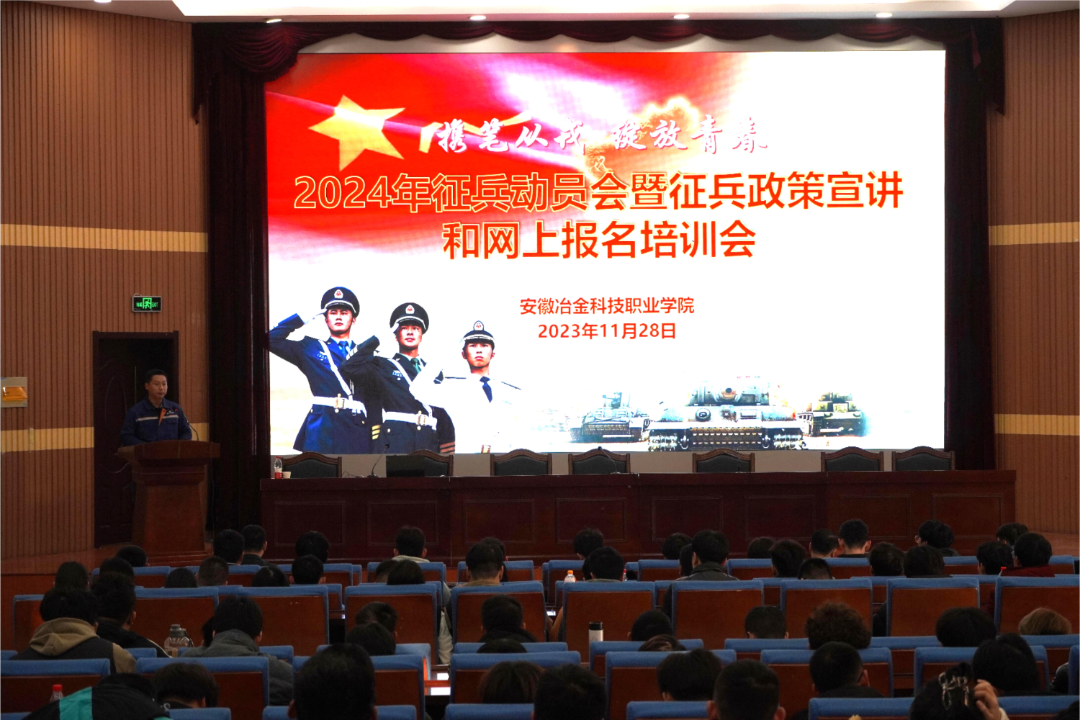 为激发大学生参军报国热情,鼓励应届毕业生积极应征入伍,推进国防和军队现代化建设。马鞍山市雨山区人武部不等不靠、提前谋划、多措并举,以时不我待的紧迫感加大精准宣传发动力度和广度。11月28日下午,联合安徽冶金科技职业学院召开毕业生征兵宣传动员会,正式吹响2024年征兵集结号。