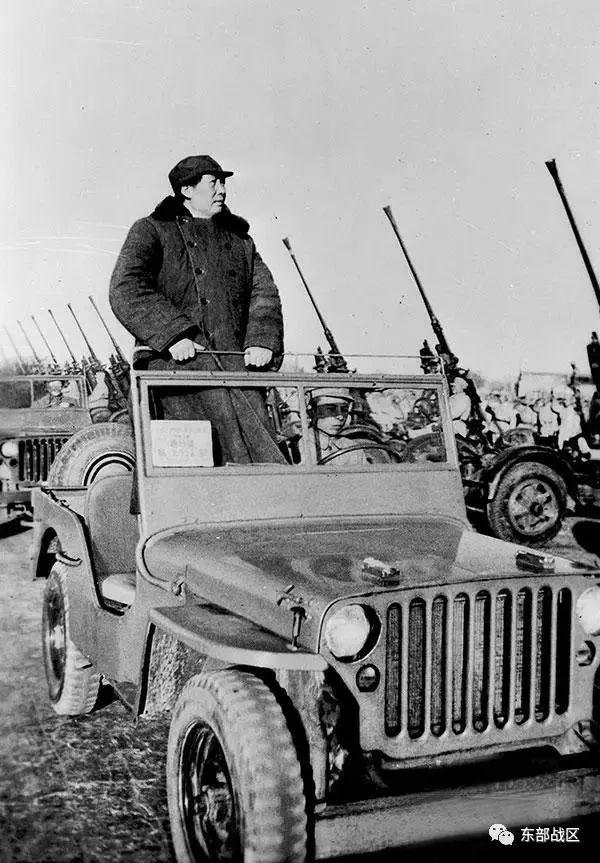 ▲1949年3月25日,毛泽东在西苑机场阅兵。