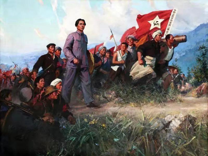 ▲1928年4月28日,朱德、陈毅率领的湘南起义部队与毛泽东领导的井冈山工农革命军在宁冈砻市胜利会师。