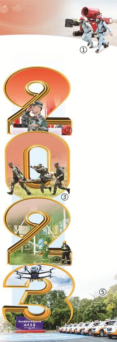 图①:广西人防专业队伍在灭火机器人配合下,开展洗消训练。胡鹏飞摄图②:在浙江省湖州市国防动员专业保障队伍点验中,指挥员整队报告。肖天桥摄图③:在北京市国防知识技能大赛中,参赛者比拼战场救护技能。黄 亮摄图④:河南省鹤壁市人防专业队伍开展消除“空袭后果”训练。董洋泳摄图⑤:安徽省黄山市组织开展国防动员系统通信技能比武竞赛。张国春摄
