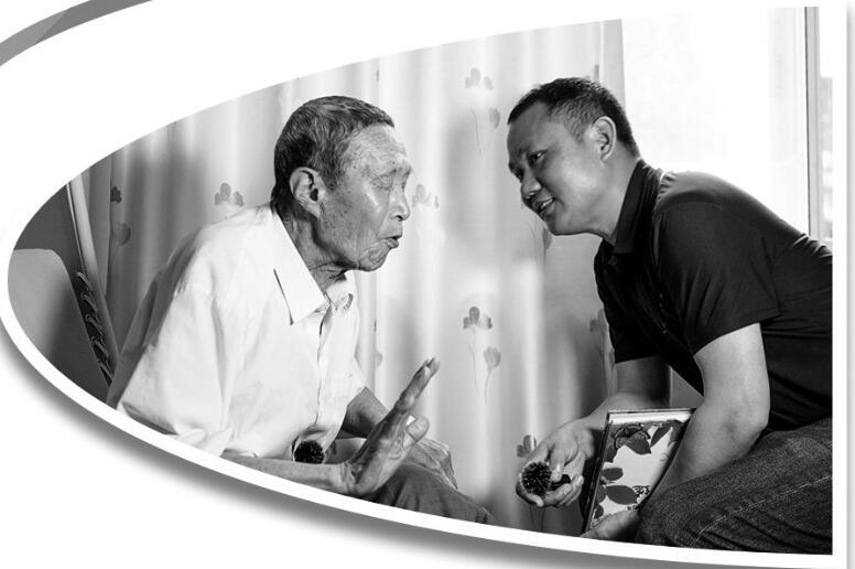 采访团队成员采访抗战老兵丁光胜(右)