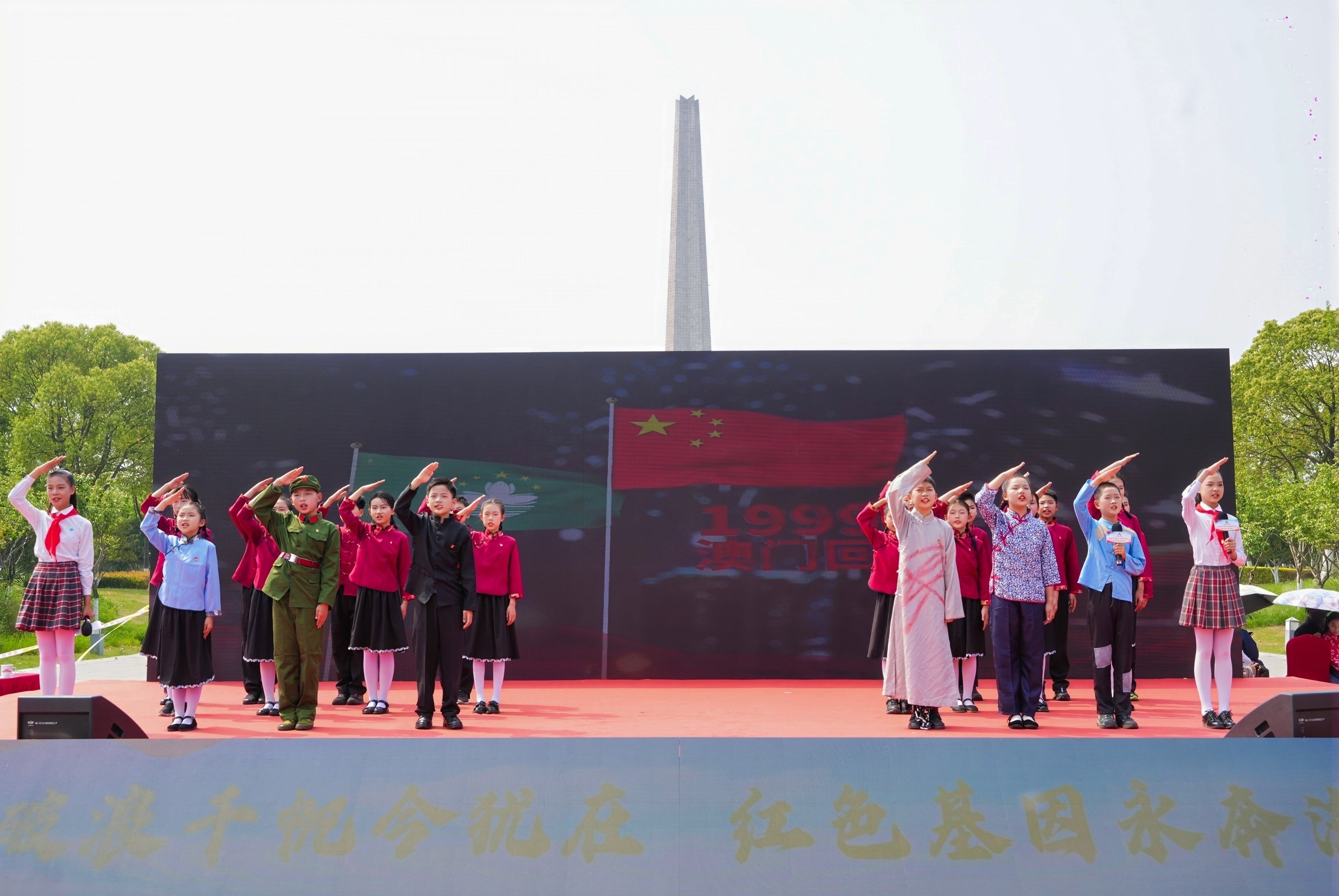 当天活动现场,合肥市师范附属小学学生通过情景朗诵《革命精神 永放光芒》,展现革命薪火的代际传承。合肥市第四十八中学嘉陵江路校区学生合唱《我们是共产主义接班人》《如愿》,以歌声致敬英烈壮举。原创情景剧《我送亲人过大江》聚焦群众支援前线的真实故事,生动诠释“最后一粒米送去做军粮”的军民鱼水情。