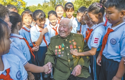“爷爷,感谢您的讲述。”采访结束,记者与孙业满道别。孙业满笑着挥手后,又轻轻扶正了胸口的党员徽章。(记者 李家鼎)