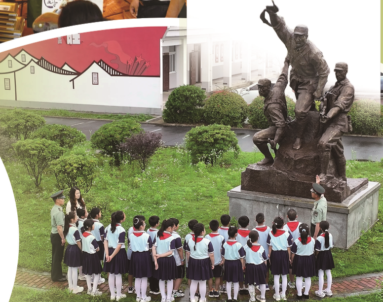 第76集团军某旅红军连官兵给小学生讲述蒋家河口战斗的故事。巢湖市人武部供图