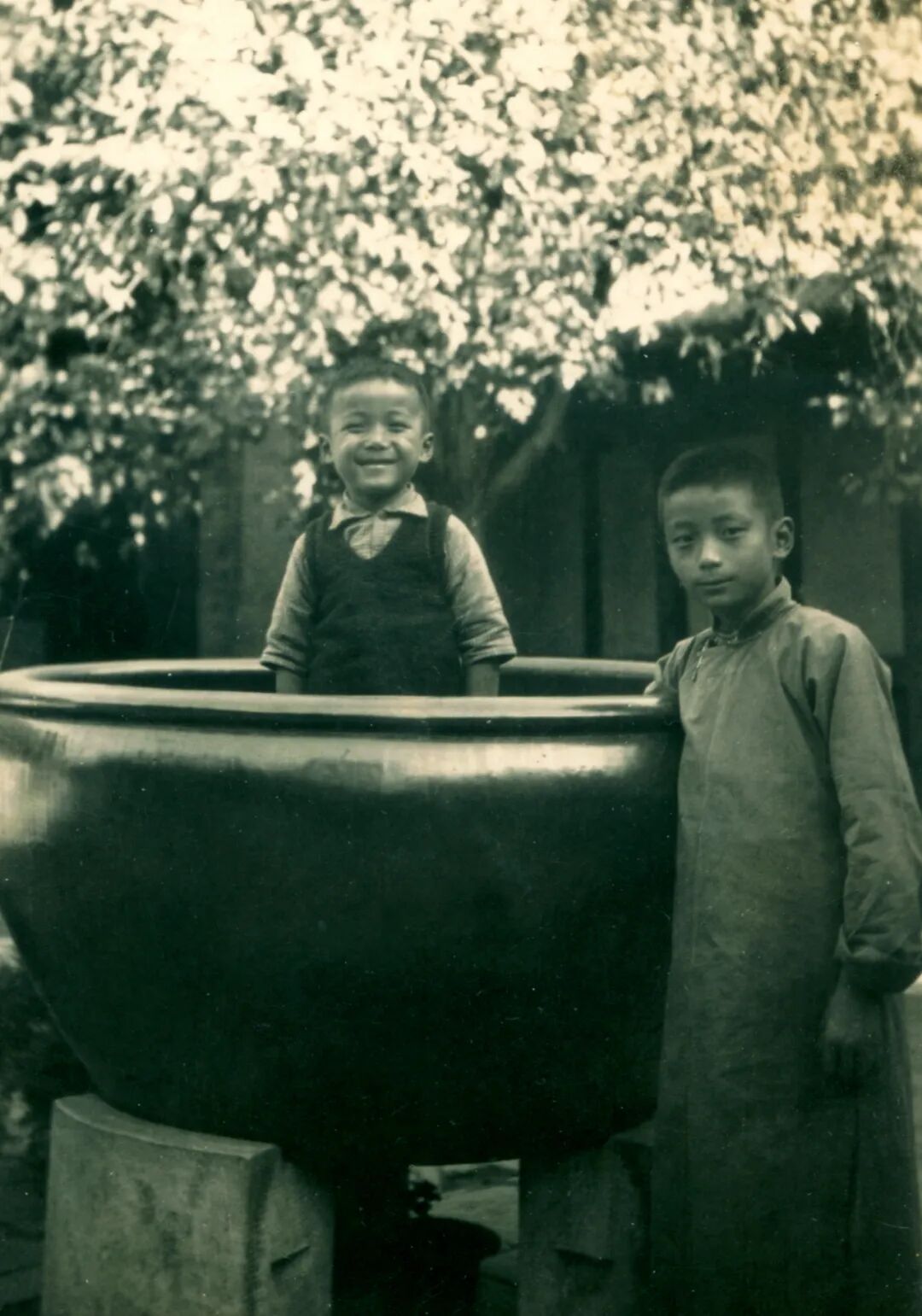 童年顾诵芬(左)与哥哥在蒋家胡同