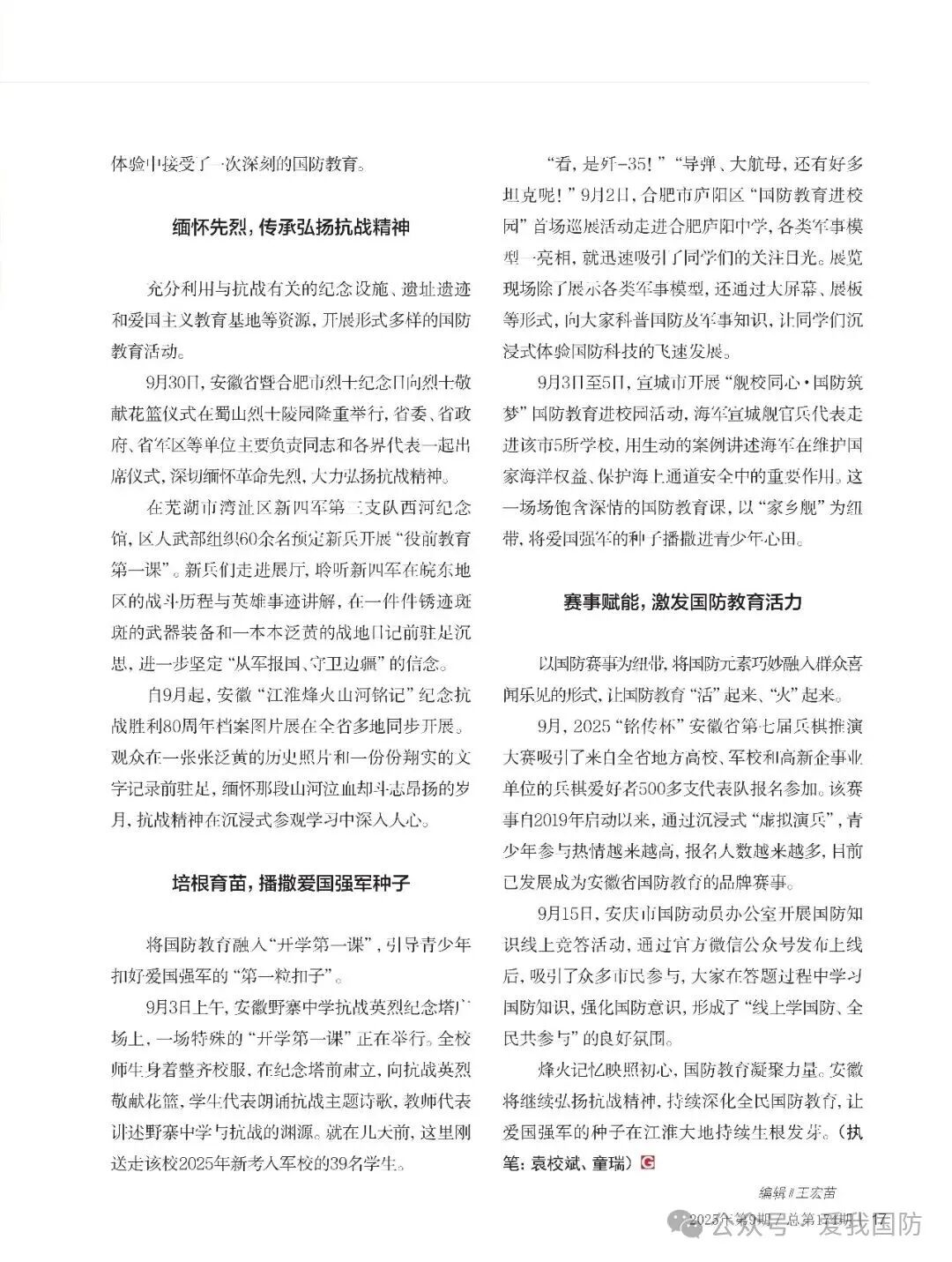 (作者:中共安徽省委宣传部全民国防教育处 执笔:袁校斌 童 瑞)