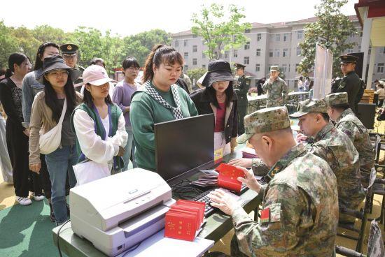 工作人员为军属现场办理军属证。 全媒体记者卢志永摄
