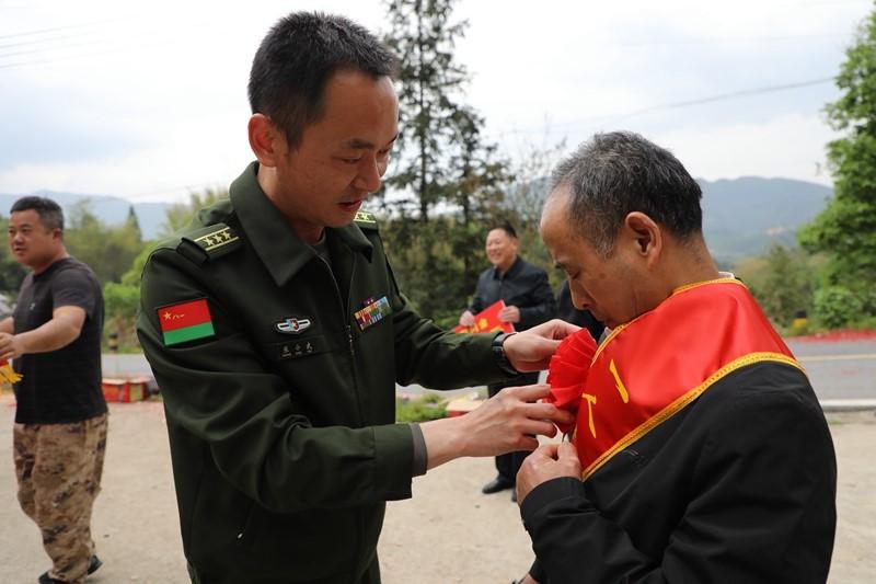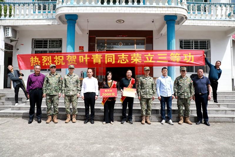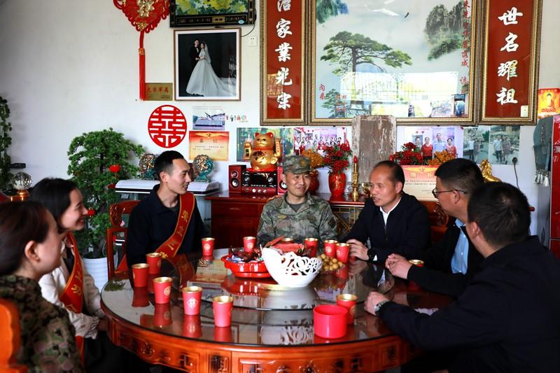 军营建功勋、家乡美名传。4月25日,县委常委、县人武部部长夏文瑞,县人武部政委张小武为现役军人家属送上立功喜报,送去党和政府的关怀与温暖。县退役军人事务局、冶溪镇、店前镇、姚河乡、来榜镇、主簿镇负责人参加活动。
