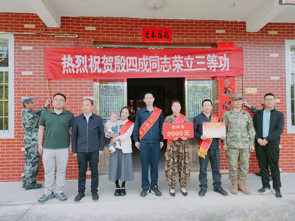 立功喜报送上门。截止4月底,上半年已累计为荣立三等功军人家庭上门送喜报9次。县人武部部长带队,县退役军人事务局局长陪同,送喜报的队伍一路打着祝贺横幅,敲锣打鼓,领导为立功军人及家属佩戴大红花,送上立功证书及资金,现场气氛隆重、热烈、喜庆。一人立功,全家光荣。上门送喜报活动充公彰显了对军人的尊崇,取得良好的社反响。