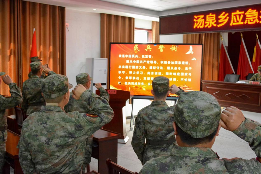 大会在雄壮激昂的《中国人民解放军军歌》中拉开序幕。大会宣读了汤泉乡民兵干部骨干任职命令,并宣布出入队人员名单、组织点名;新任应急排排长带领参会民兵进行入队宣誓;入队民兵代表进行了表态发言,表明了忠实履行国防义务、随时响应国家号召、担当职责使命的坚强决心。