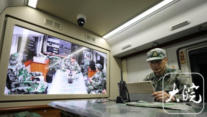 淮南市国防动员部门参训人员在指挥车上调试通信信号。