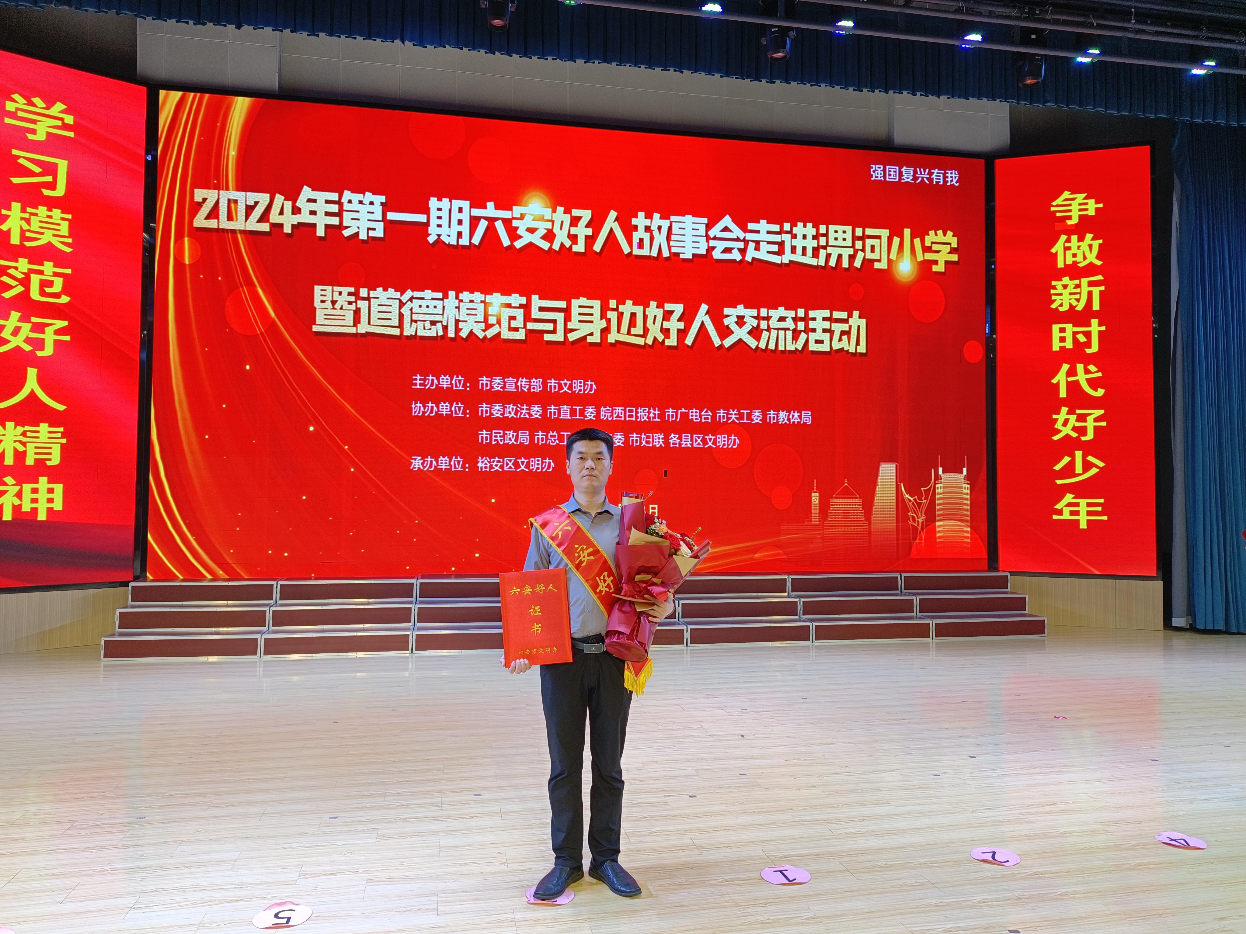 日前,2024年第一期六安好人故事会走进淠河小学暨道德模范与身边好人交流活动在裕安区淠河小学举行,袁治国同志作为“六安好人”助人为乐类代表上台发言交流。