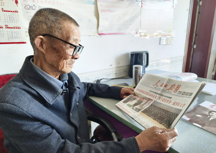 刚到家门口,王和满从菜地劳作回来,看上去精神矍铄,面色红润。他每天除了偶尔出去散步遛弯、菜园里捯饬就是在家里读书看报看新闻。老人家在乐享幸福生活的同时,仍关心国家大事,最喜欢看军事频道,时刻关注着军事新闻,阅览着军报、党刊。因此,他发自内心地为建党百年来所取得的辉煌成就而感到高兴,并且体会最深刻。