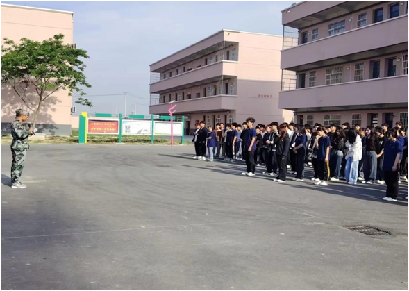 在学校的操场上,鲜艳的五星红旗迎风飘扬。退役军人服务站的成员们站在国旗下,以坚定的姿态和激昂的话语,开始了这场国防教育宣讲活动。