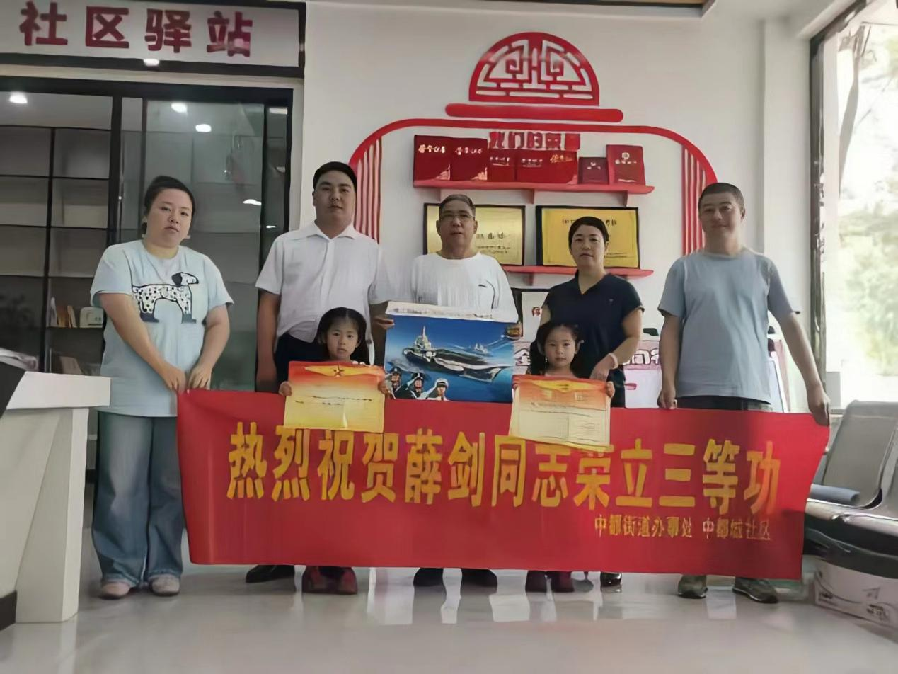 6月27日,凤阳县退役军人事务局联合中都街道退役军人服务站、中都城社区等相关负责同志一行为荣立三等功的现役军人薛剑家庭送去立功喜报,对他们表示崇高的敬意和衷心的祝贺。