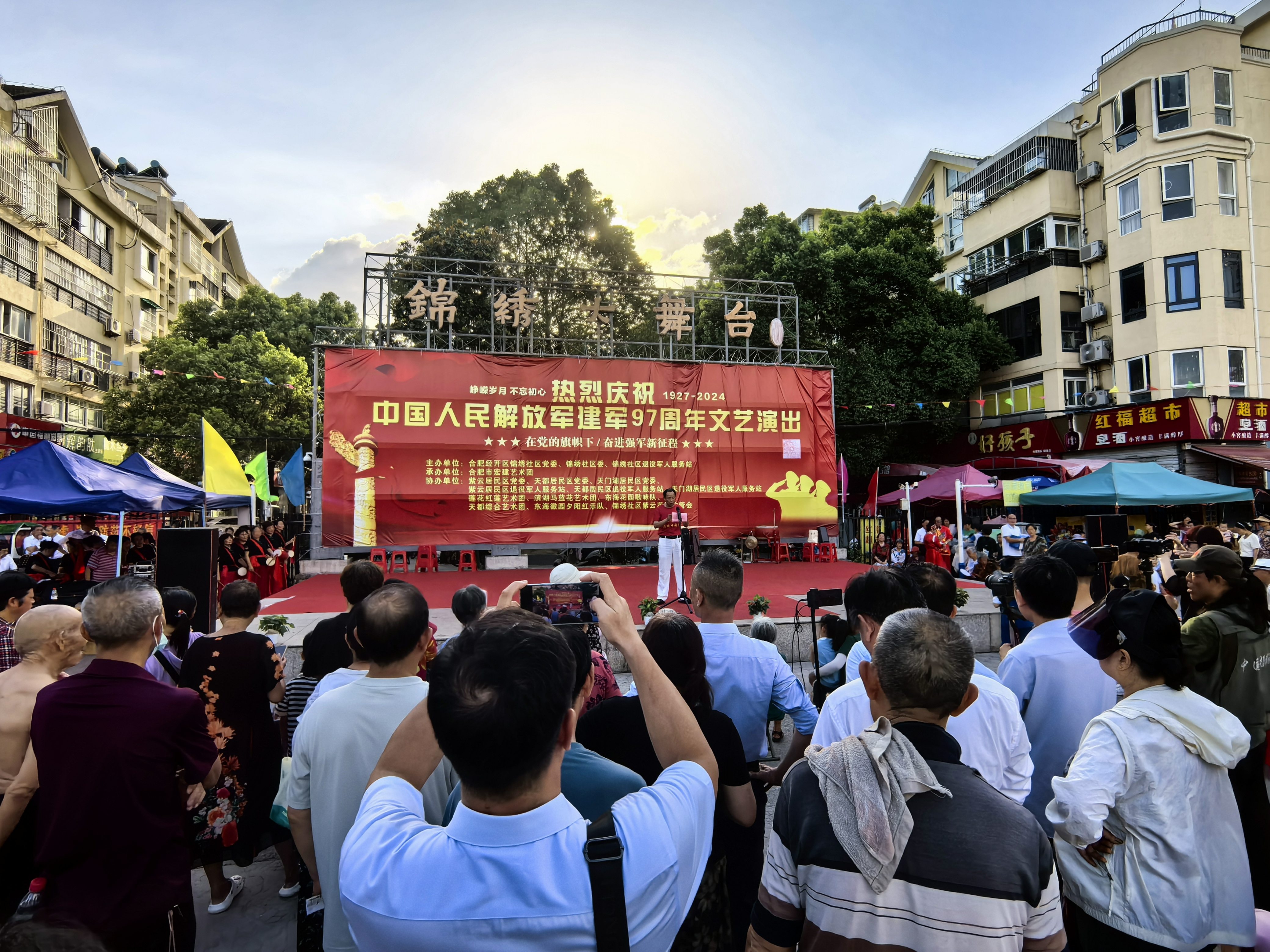 军民鱼水深,浓浓双拥情。7月25日,在“八一”建军节即将来临之际,合肥锦绣社区退役军人服务站联合紫云居委会退役军人服务站、天都居委会退役军人服务站、天门湖居委会退役军人服务站、合肥经开区五彩战鹰应急救援志愿服务队及合肥市宏建艺术团共同举办庆祝中国人民解放军建军97周年文艺演出,将红色基因传承、爱国拥军教育、退役军人志愿服务融入晚会中,拓展活动内涵,唱响时代主旋律,赓续军队红色血脉。
