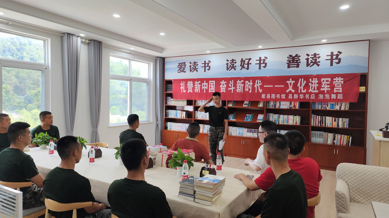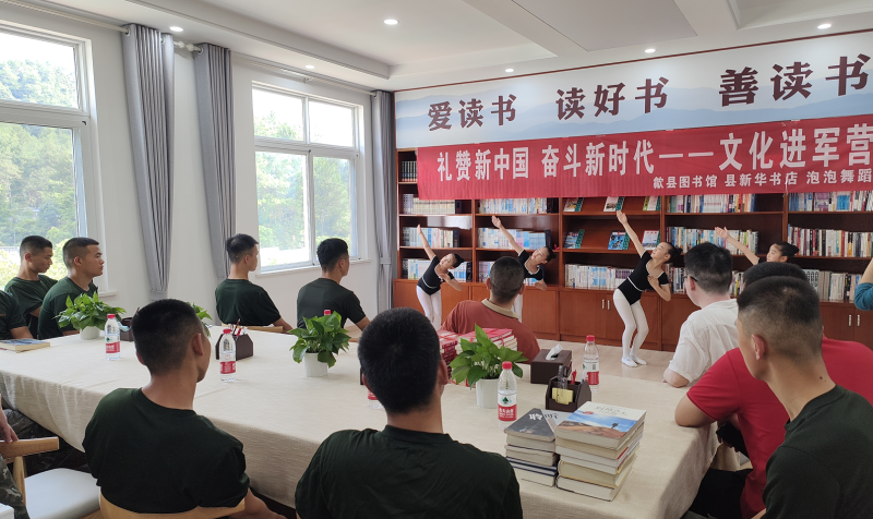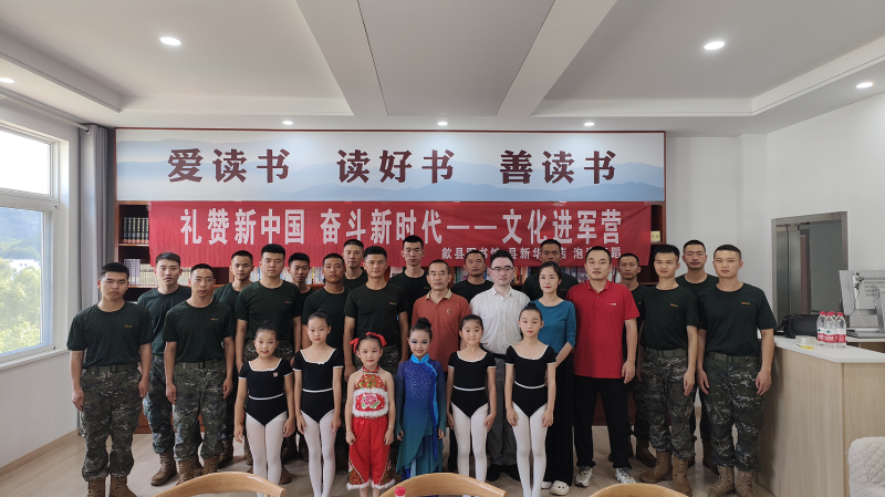 为庆祝中华人民共和国成立75周年,中国人民解放军建军97周年,7月31日下午,歙县图书馆特携手县新华书店、泡泡舞蹈走进歙县武警中队,开展“礼赞新中国,奋斗新时代——文化进军营”活动。