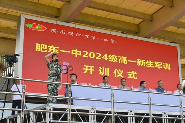 徐轶郑重宣布:“肥东一中2024级高一新生军训开训!”