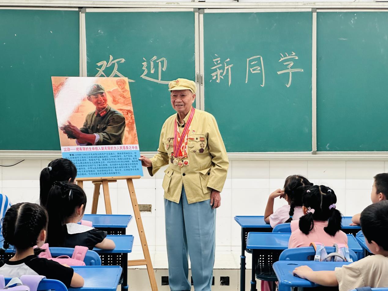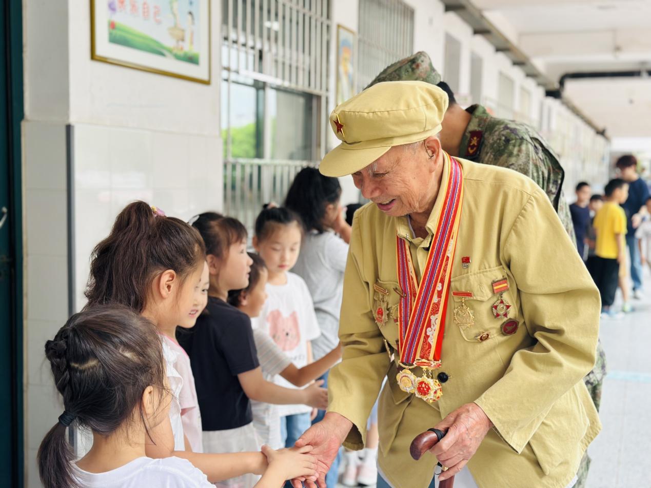 迎着清晨第一缕朝霞,伴着走廊第一声打铃。8月28日,90岁高龄的参战老兵宣钜华为合肥市长江路第二小学栢景湾校区一年级新生带来生动且具有影响力和说服力的“入学第一课”。“入学第一课”作为“大思政课”的重要一环,意义重大,此次红色故事宣讲,让新入学青少年深刻理解百年征程历经的苦难辉煌,从革命先辈的事迹精神意志与思想追求中汲取力量。