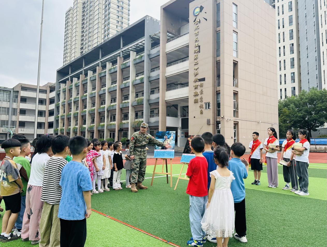 8月28日,合肥市长江路第二小学栢景湾校区在2024年秋季开学季开展了红歌声声满校园活动。活动中,来自庐阳区亳州路街道社区民兵营营长们为小学六年级学生们讲述战斗英雄故事并教授红歌。孩子们精神饱满,激情澎湃,用嘹亮的歌声唱响《红星歌》。