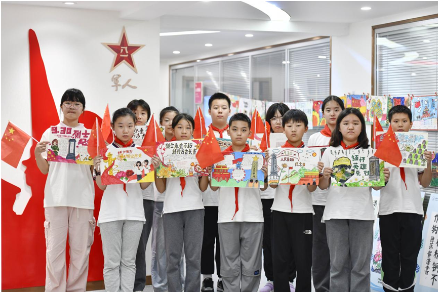 亳州路街道退役军人服务站,是庐阳区首批爱国主义教育基地。活动中,长二小栢景湾校区学生集中观看了红色影片《狼牙山五壮士》片段,参观了亳州路退役军人服务站内的展陈。学生们还创作了一幅幅精美的纪念烈士主题手抄报,或描绘了革命先烈的光辉事迹,或抒发了学生对祖国的热爱。