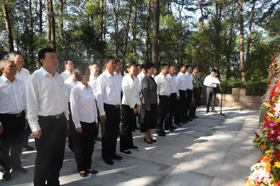 上午9时,烈士纪念日活动正式开始。何毅主持向烈士敬献花篮仪式。