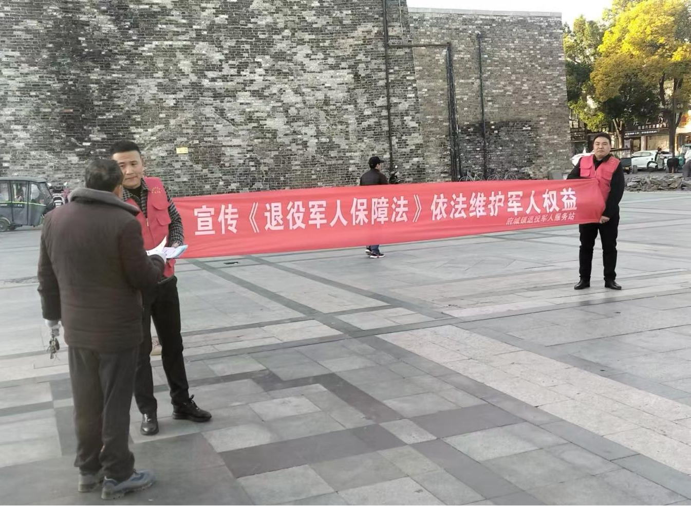 11月26日,凤阳县府城镇退役军人服务站联合中都街道退役军人服务站来到府城镇楼东社区鼓楼广场开展退役军人政策法规宣传活动。